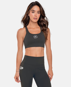 TOP DEPORTIVO DAMA COPA INTERNA REMOVIBLE QUE APORTAN FIRMEZA Y GENERA VOLUMEN, TIRANTES DIAGONALES Y ABROCHADURA GRADUABLE EN ESPALDA DESCUBIERTA