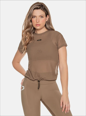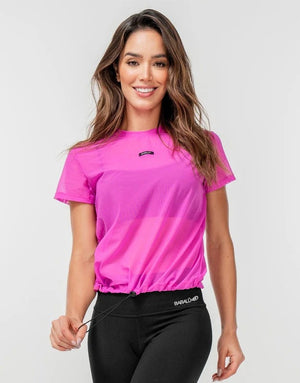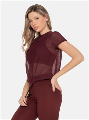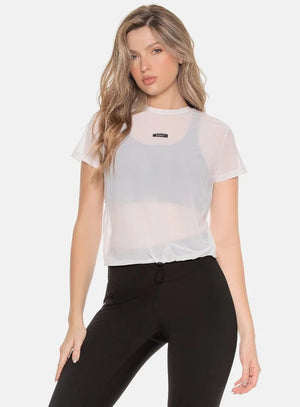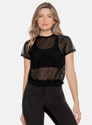 Este top deportivo semi transparente es la combinación perfecta de estilo moderno y funcionalidad. Fabricado con tela semi transparente, este top ofrece una sensación de frescura y un toque único a tu atuendo deportivo. Además, está diseñado con marquilla tejida y un cordón trenzado con terminal para ajustar a la medida, permitiéndote personalizar el ajuste para un confort total.