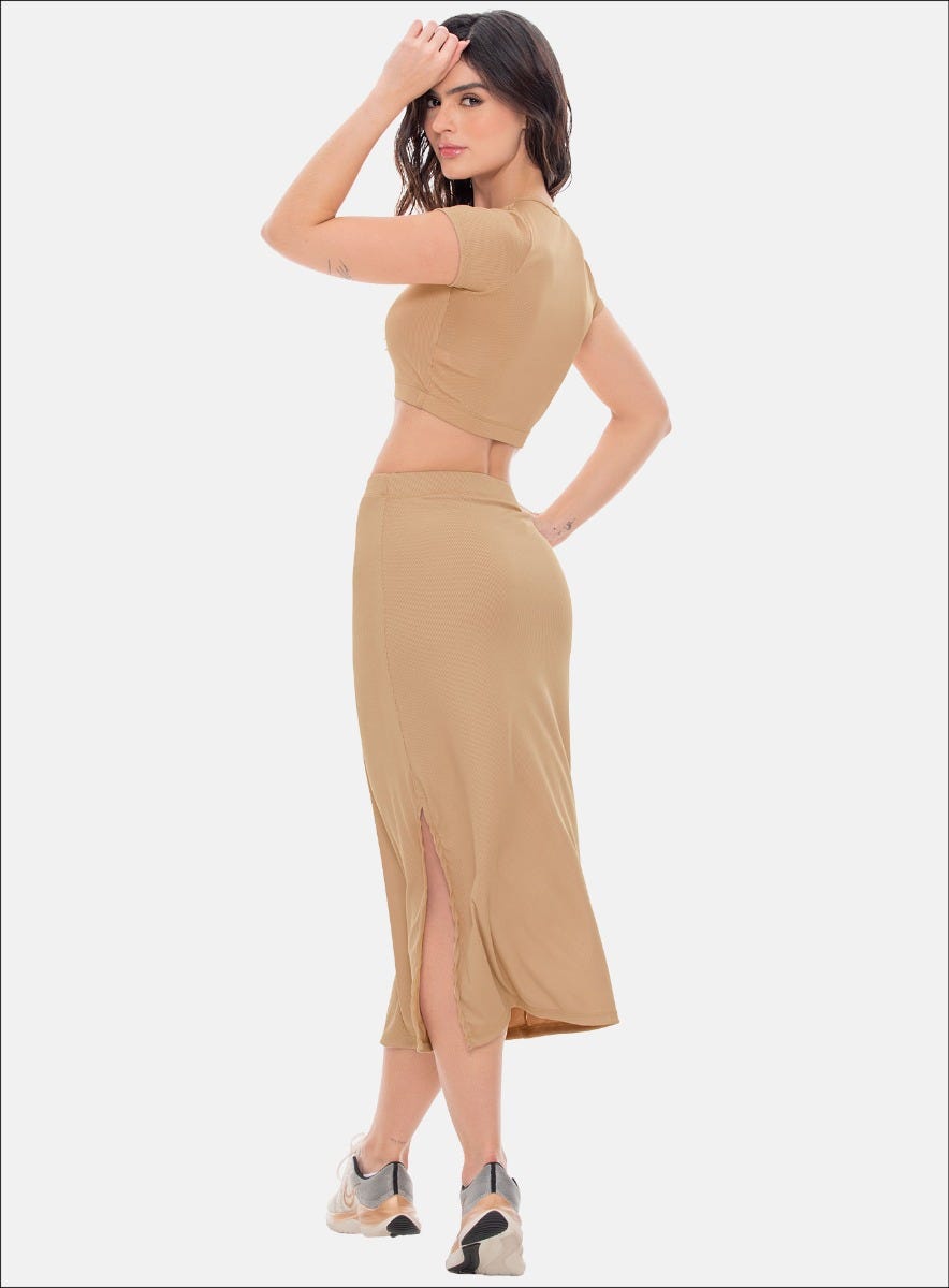 - Diseño de falda midi larga con abertura: La falda tiene un diseño elegante con una abertura en un lado, lo que permite mayor comodidad y un toque moderno.