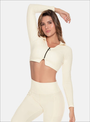 BUZO CORTO DAMA CON CUELLO SPORT, CON CIERRE DELANTERO Y FORRO INTERNO