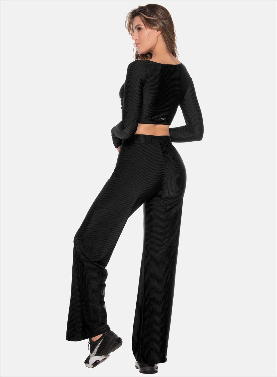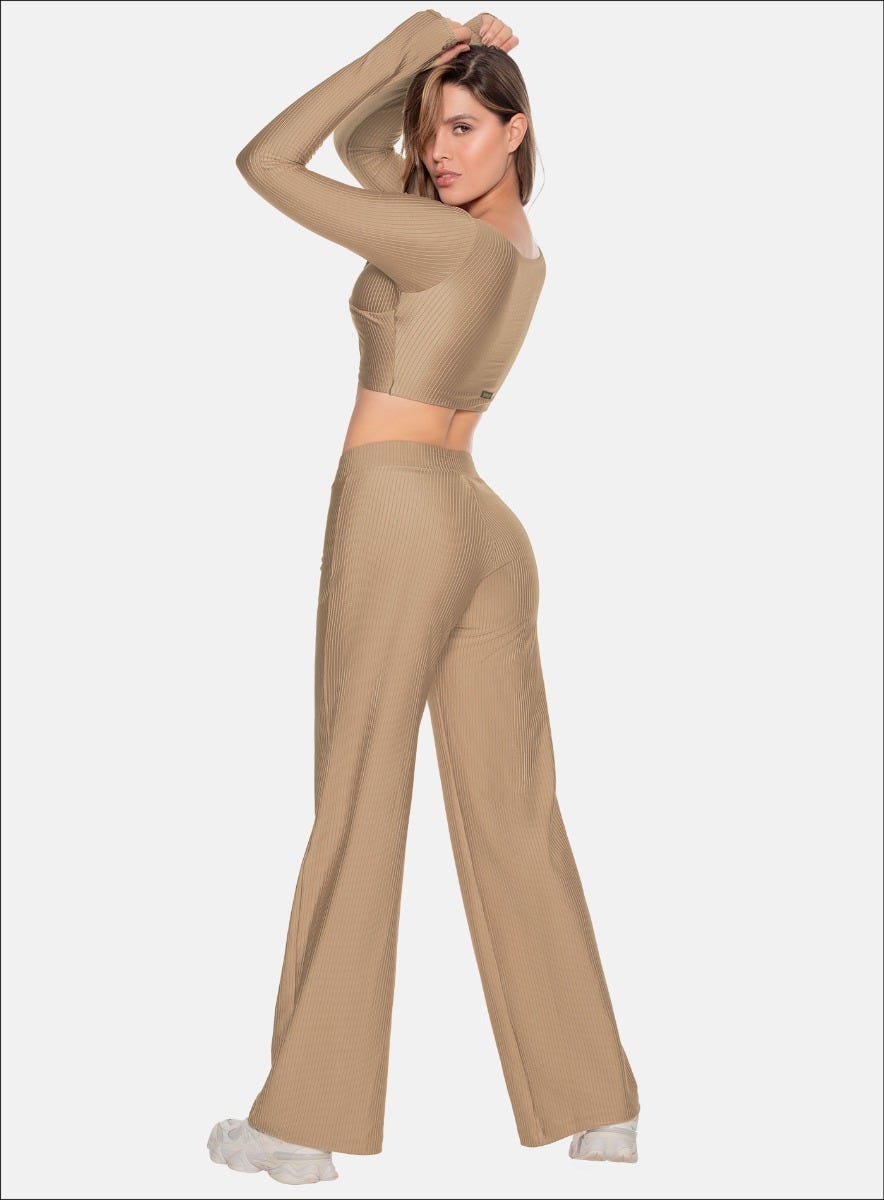 PANTALON BOTA ANCHA EN TELA ACANALADA EFECTO BRILLANTE