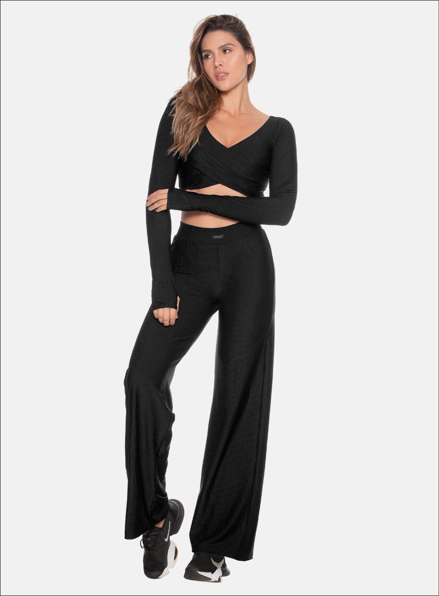PANTALÓN DEPORTIVO BOTA ANCHA EN TELA ACANALADA CON EFECTO BRILLANTE