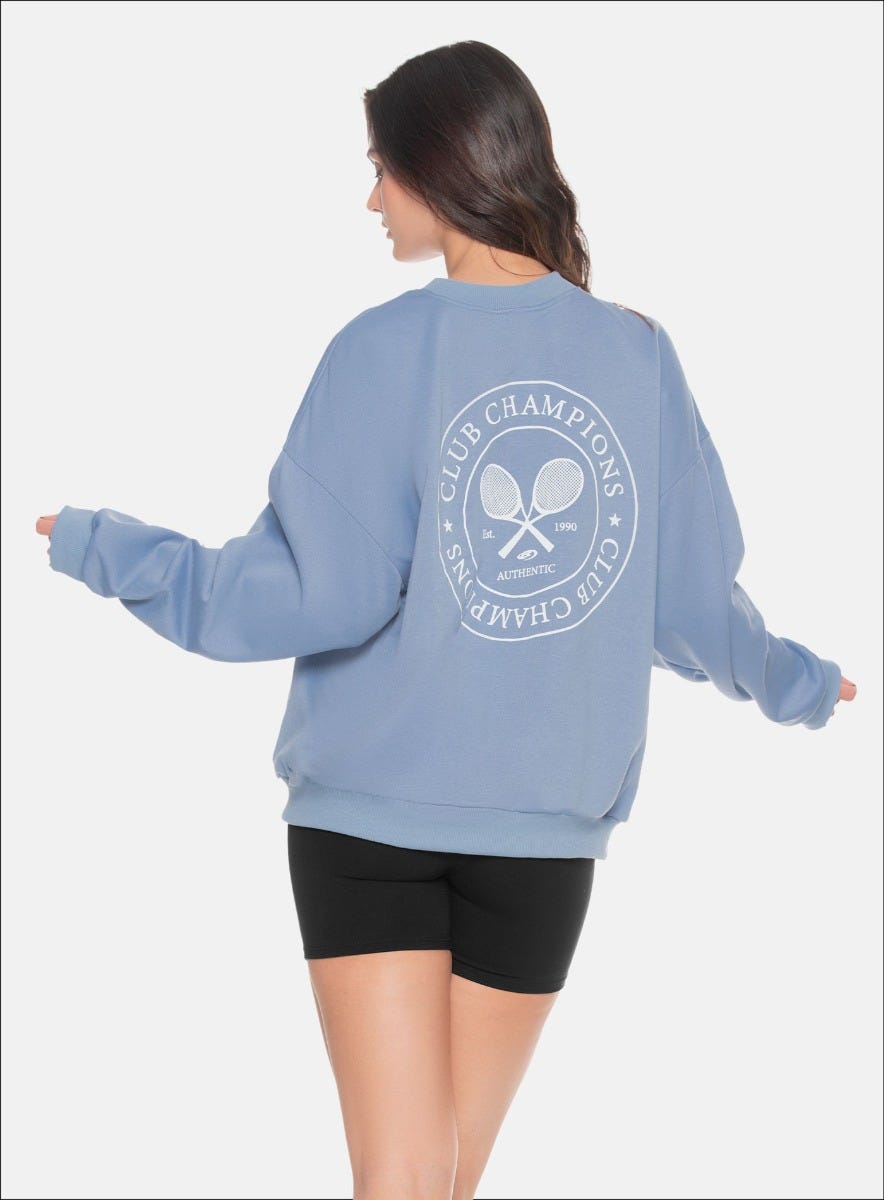 BUZO OVERSIZE CON ESTAMPADO CENTRO FRENTE Y ESTAMPADO AMPLIO EN ESPALDA