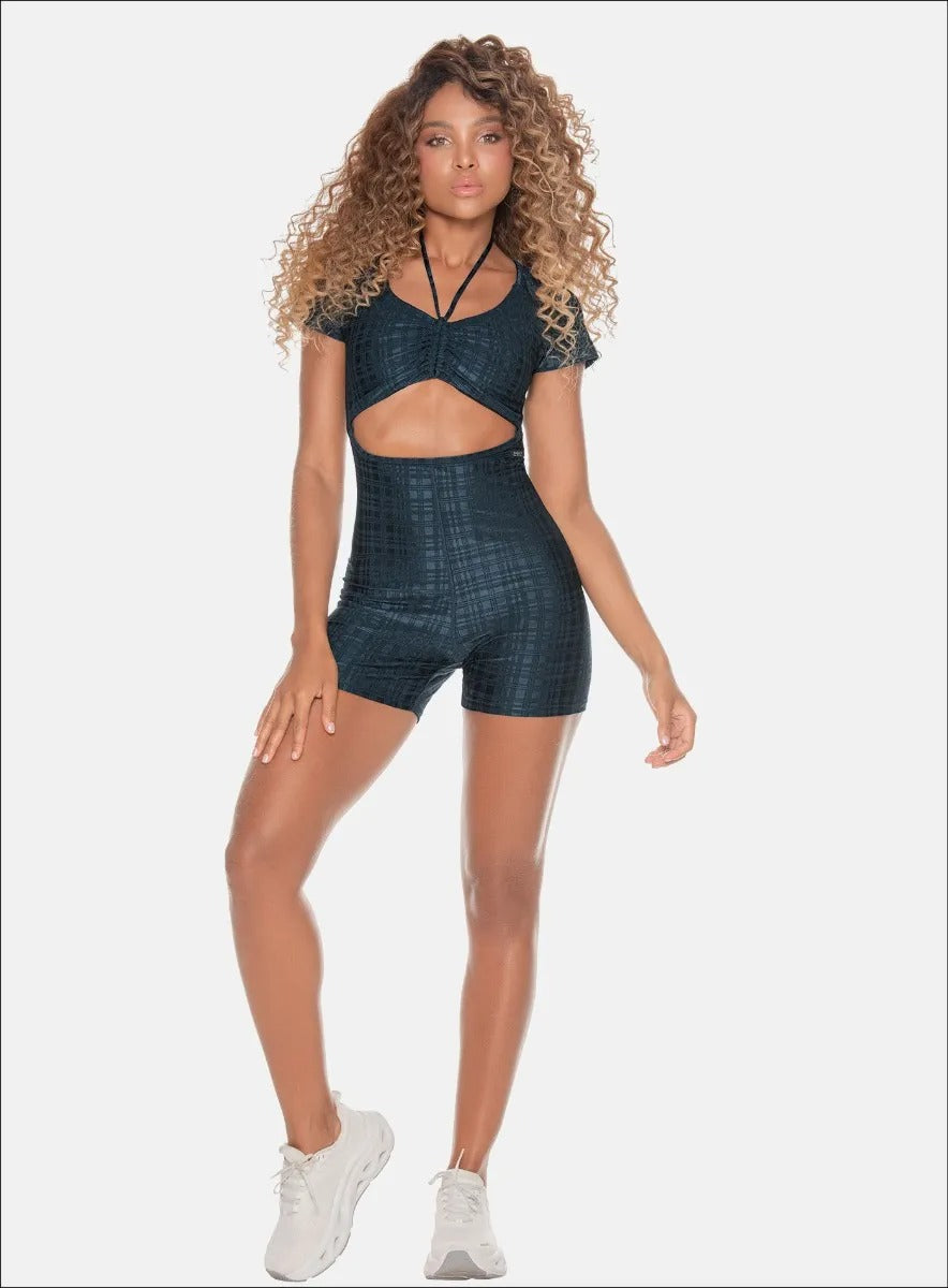 ENTERIZO CORTO DEPORTIVO TELA CON DISEÑO JACQUARD Y EFECTO BRILLO, CON ESCOTE EN FRENTE Y PARTE POSTERIOR
