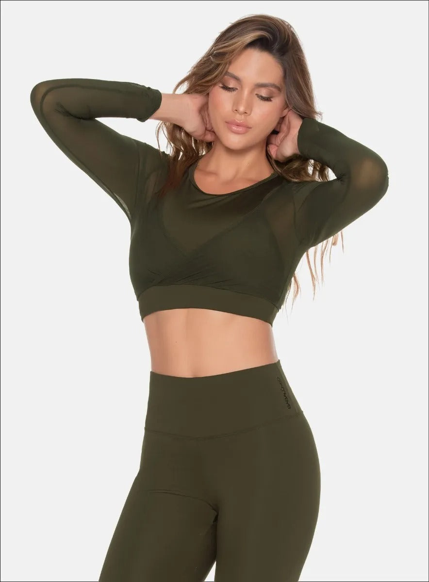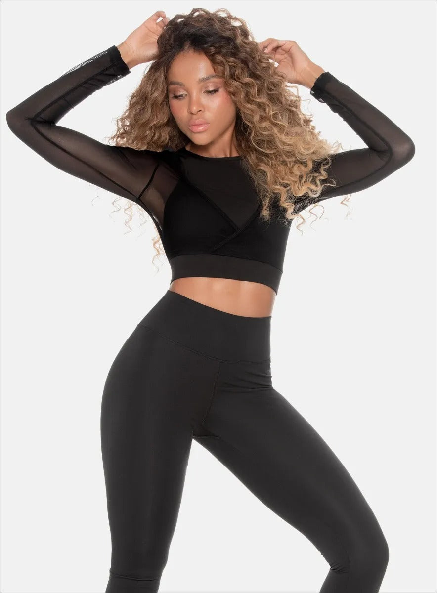 BUZO DEPORTIVO CON CORTES DECORATIVOS EN TELA SEMI TRANSPARENTE CON TOP INTERNO