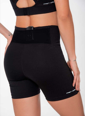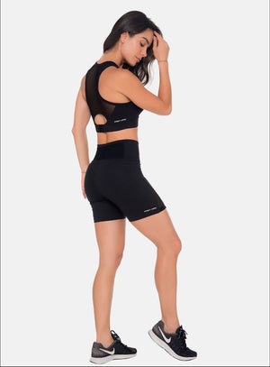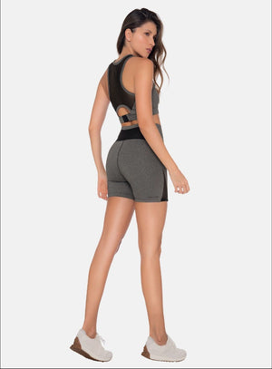 SHORT CON CORTES EN FRENTE EN TELA SEMI TRANSPARENTE Y CON BOLSILLO FUNCIONAL EN PRETINA