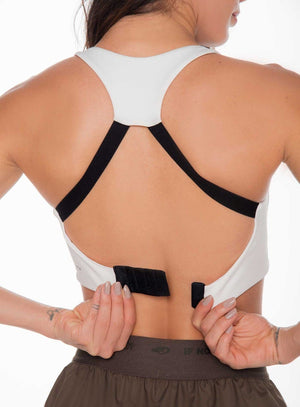 TOP DEPORTIVO DAMA COPA INTERNA REMOVIBLE QUE APORTAN FIRMEZA Y GENERA VOLUMEN, TIRANTES DIAGONALES Y ABROCHADURA GRADUABLE EN ESPALDA DESCUBIERTA
