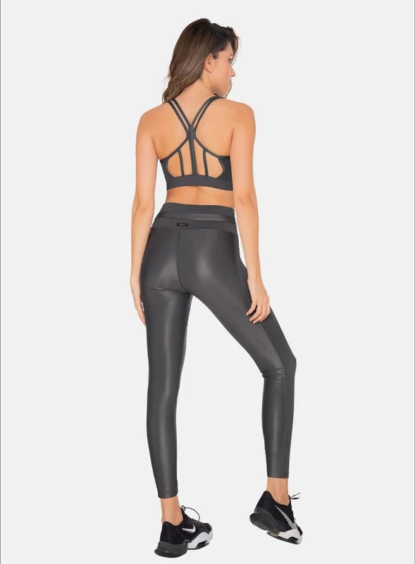 LEGGINS DEPORTIVO CON ACABADO BRILLANTE, TIENE CORTES EN LOS COSTADOS