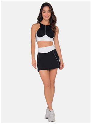 FALDA DEPORTIVA CON SHORT INTERNO, TIENE PRETINA Y SESGOS VIVOS EN DELANTERO Y EN CONTRASTE DE COLOR