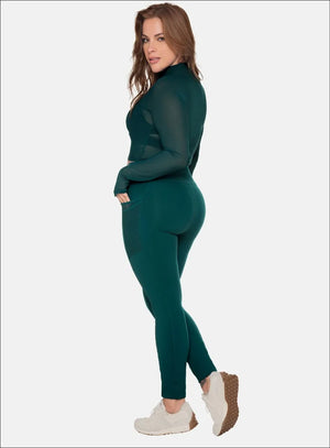 LEGGINS DEPORTIVO CON CORTES VERTICALES EN LOS COSTADOS Y BOLSILLOS DOBLES EN TELA SEMI TRANSPARENTE