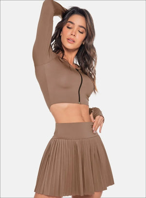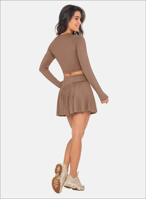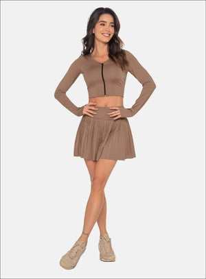 FALDA DEPORTIVA PLISADA CON PRETINA ALTA Y SHOR INTERNO PROTECTOR