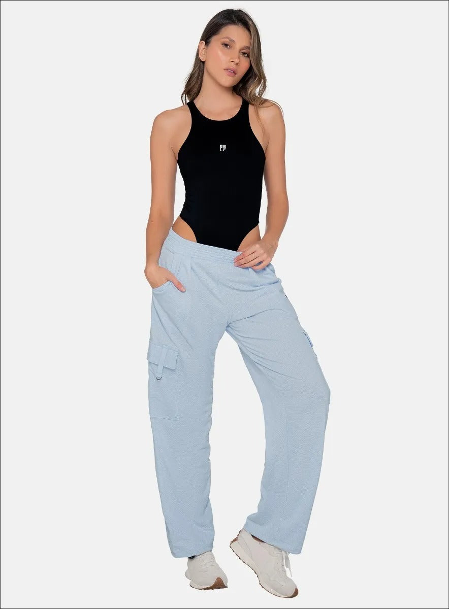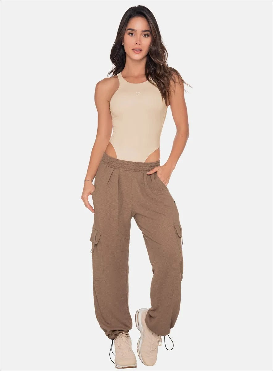 PANTALÓN DEPORTIVO CON ELÁSTICO INTERNO EN PRETINA, BOLSILLOS DIAGONALES EN LATERALES, TIPO CARGO CON TAPA EN COSTADOS