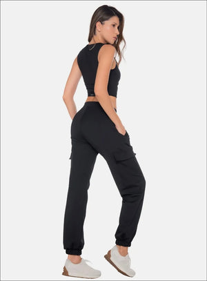 PANTALÓN DEPORTIVO CON ELÁSTICO INTERNO EN PRETINA Y BOTAS, BOLSILLOS DE CAJA EN LATERALES TIPO CARGO EN COSTADOS.