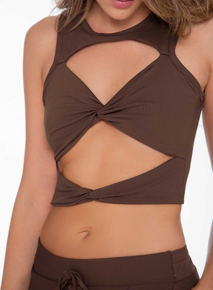 TOP DEPORTIVO LARGO CON FORRO INTERNO MANGA SISA CON RECOGIDOS EN EL CENTRO – FRENTE.