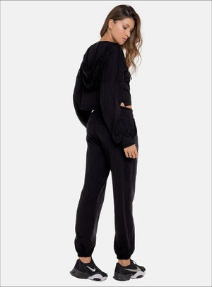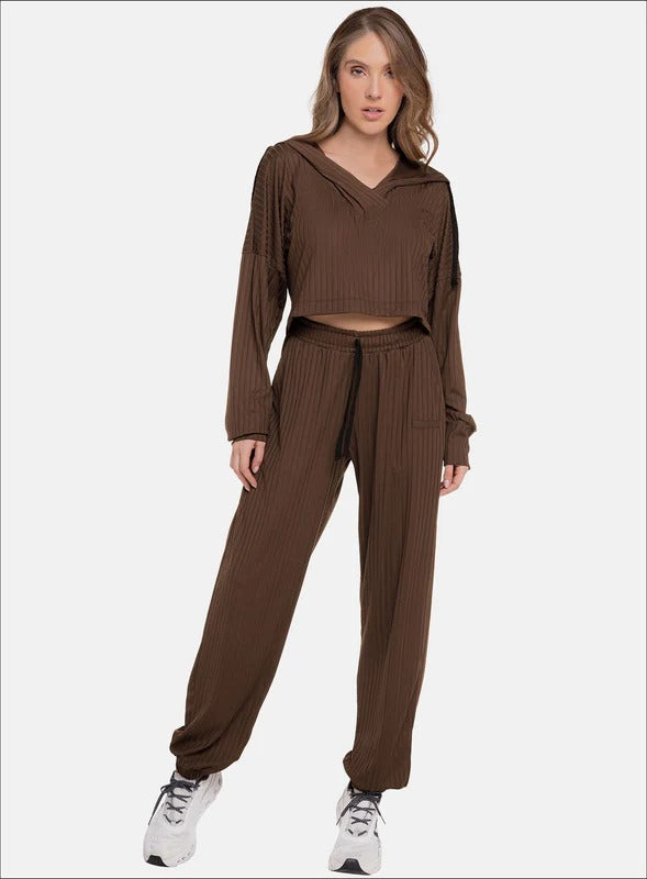 JOGGER EN TELA RIB CON TEXTURA ACANALADA, IDEAL PARA EL USO DE ACTIVIDADES DIARIAS, CAMINATAS O ESTIRAMIENTOS, GRACIAS A SU SILUETA CÓMODA QUE A SU VEZ AGREGA UN ESTILO CASUAL CON ELEMENTOS DEPORTIVOS.
