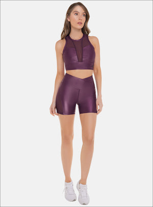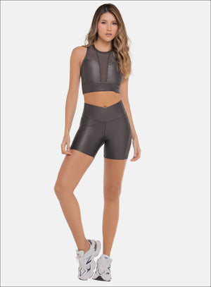 SHORT DEPORTIVO CON INSERTOS EN MALLA TELA APARIENCIA CUERO
