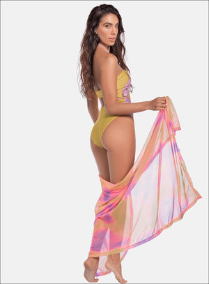 VESTIDO DE BAÑO ENTERO TELA EFECTO BRILLO SUBLIMADO EN FLORES