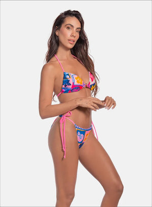 VESTIDO DE BAÑO DOS PIEZAS CON SUBLIMADO DECORATIVO TOP CON ARGOLLA DECORATIVA