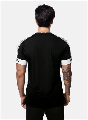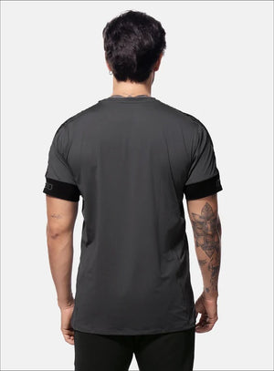 CAMISETA DE HOMBRE DEPORTIVA COMBINADA CON MANGA CORTA ESTAMPADO LOCALIZADO