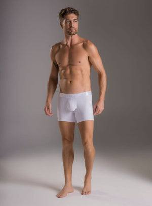Bóxer fondo entero y de talle corto, fabricado en algodón 100% natural. Silueta ajustada y elástico contramarcado en cintura.