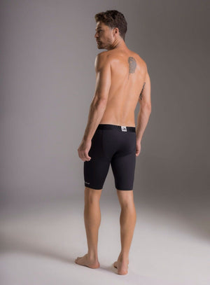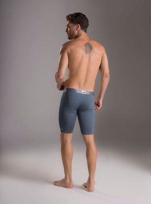 Bóxer deportivo fondo entero y de talle largo, fabricado en microfibra. Su material es 87% poliéster y 13% elastano. Silueta ajustada, costuras reforzadas y elástico contramarcado en cintura.