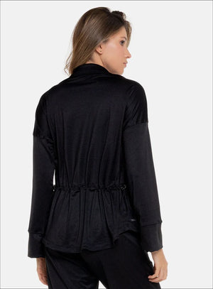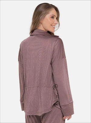BLUSÓN EN TELA RIB, DESTACA POR SU TELA ACANALADA Y ELEMENTOS COMO SU CORDÓN ELÁSTICO QUE POR MEDIO DE TERMINALES PERMITE AJUSTAR LA CINTURA A LA MEDIDA DESEADA, CONSTRUYENDO ASÍ UN LOOK FRESCO Y MODERNO.