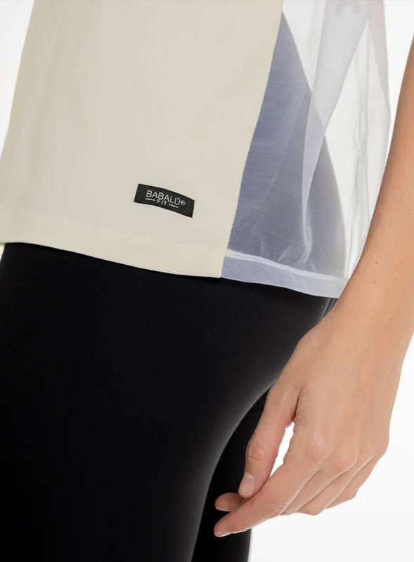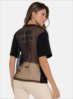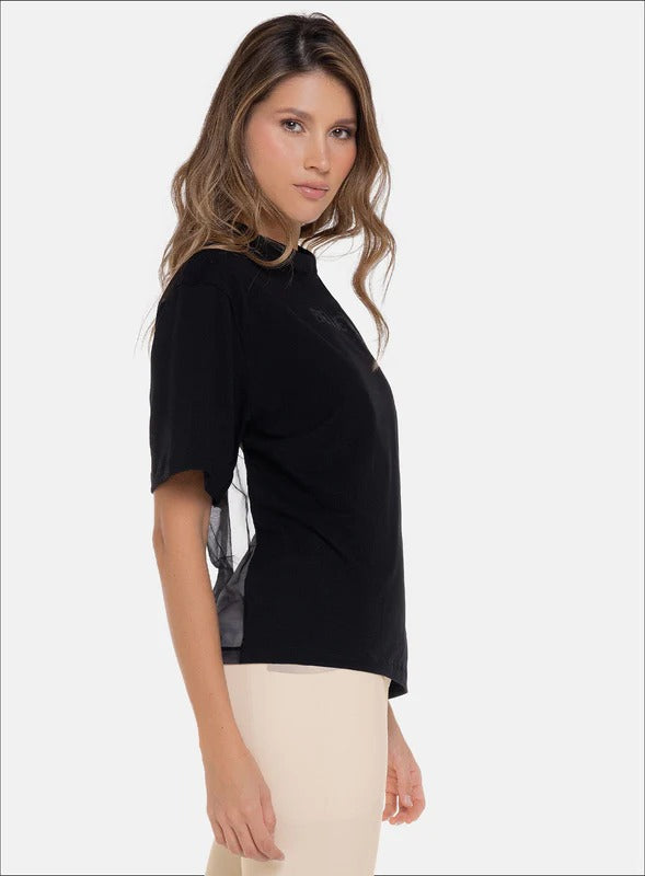 Camiseta deportiva con espalda en tull y estampado