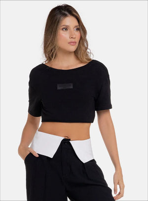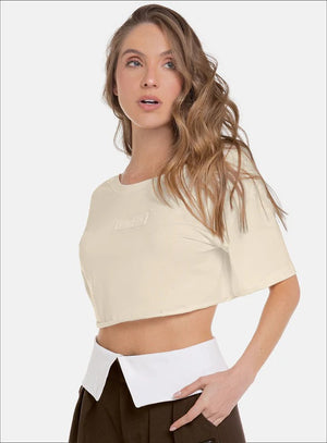 BLUSA TIPO CROP TOP EN ALGODÓN, IDEAL PARA SITUACIONES INFORMALES DONDE SE BUSCA UN ESTILO MODERNO, CÓMODO Y CON ACTITUD.