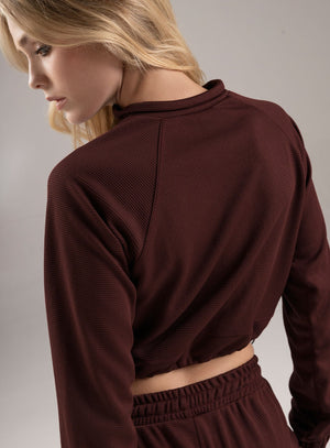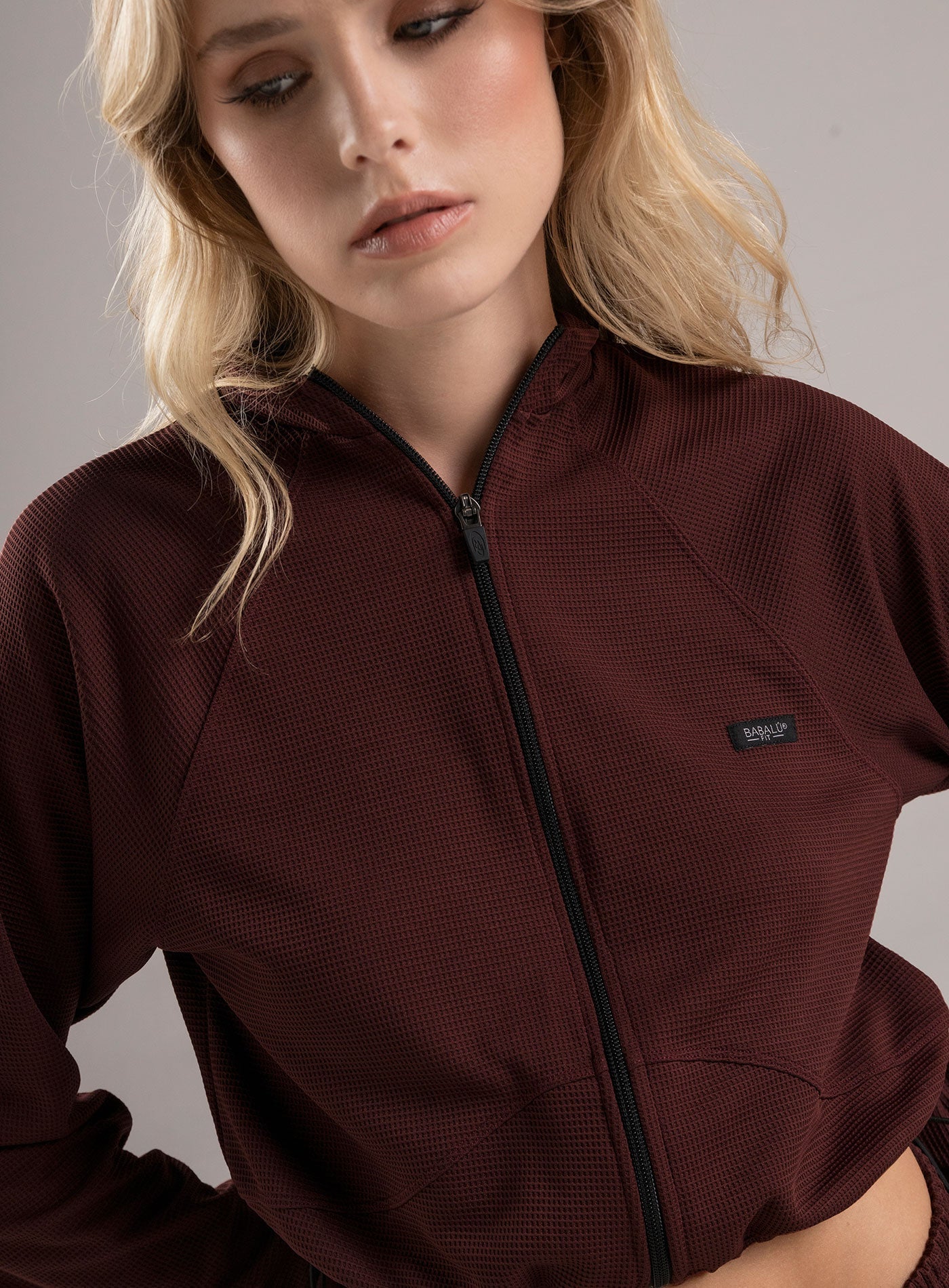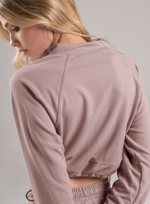 chaqueta deportiva dama estilo casual en tela sin elongación con una superficie en textura "galleta". incluye cordón elástico con terminales niquelados en el ruedo para dar ajuste al gusto. es ideal para paseos al aire libre o construir un look fresco y con estilo.