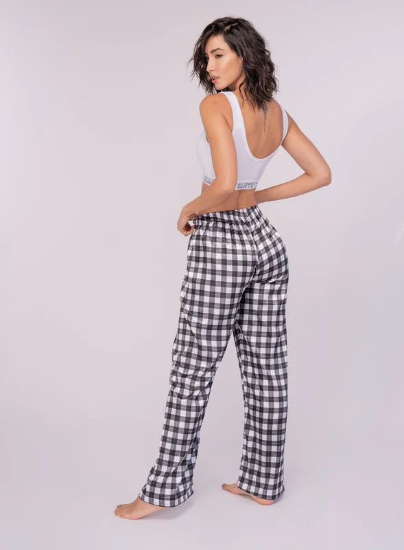 PIJAMA DE ESTILO FRESCO Y RELAJADO QUE COMBINA PANTALÓN EN SATIN Y BLUSA EN ALGODÓN MUY CÓMODA, SUAVE Y FRESCA