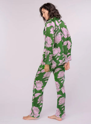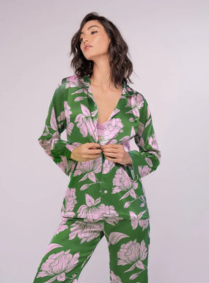 PIJAMA EN SATIN, CON SILUETA RELAJADA Y PRETINA ELASTICA PARA UNA APARIENCIA COMODA Y ELEGANTE