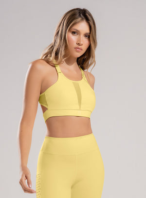 Top con forro interno, corte frontal y espalda en malla tull, tiene fajón y abrochadura posterior
