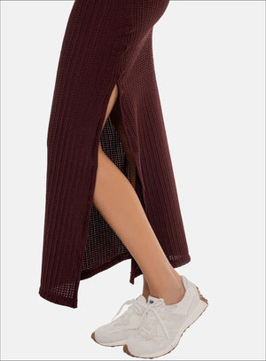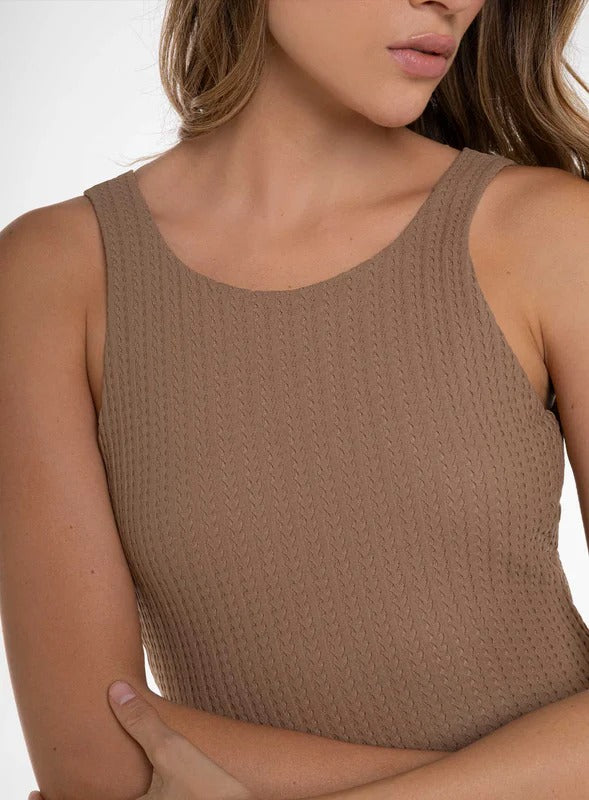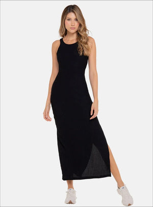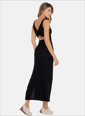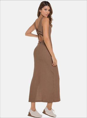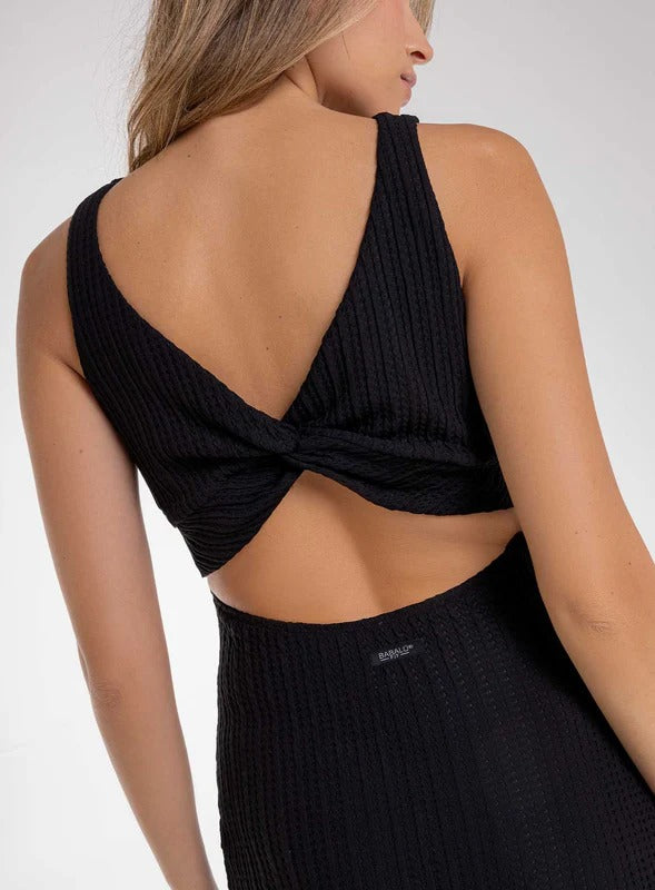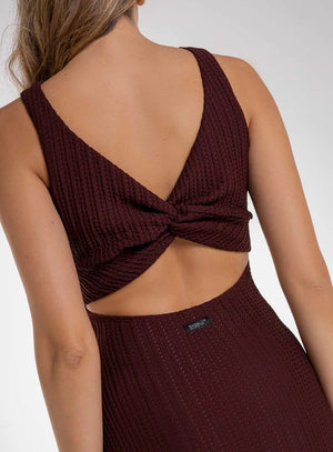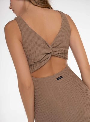 VESTIDO CON NUDO EN FRENTE QUE REALZA EL BUSTO, ABERTURA LATERAL QUE CREA UNA SILUETA PERFECTA PARA UN LOOK CASUAL, ELEGANTE O DEPORTIVO, EN TELA TEJIDA QUE SE ADAPTA A TU CUERPO COMO UNA SEGUNDA PIEL GARANTIZANDO COMODIDAD Y AJUSTE PERFECTO.